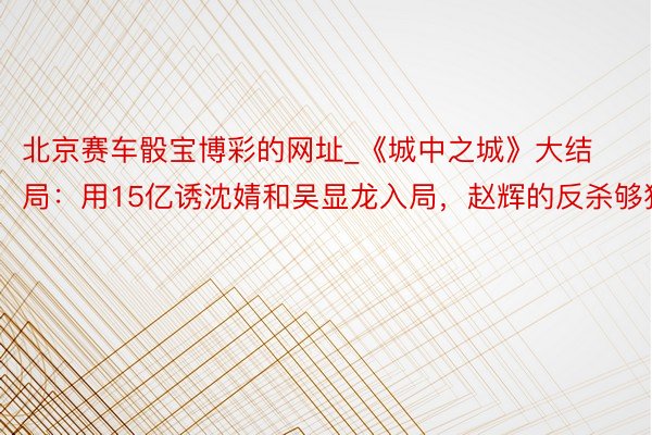 赵辉设局要让沈婧和吴显龙一皆栽跟头,他知谈吴显龙父子和沈婧配合的事情,是以准备了对策。沈婧以为赵辉怕了,其实赵辉也在布局,准备一举把沈婧和吴显龙一皆拿下。是以沈婧但是明智反被明智误了。