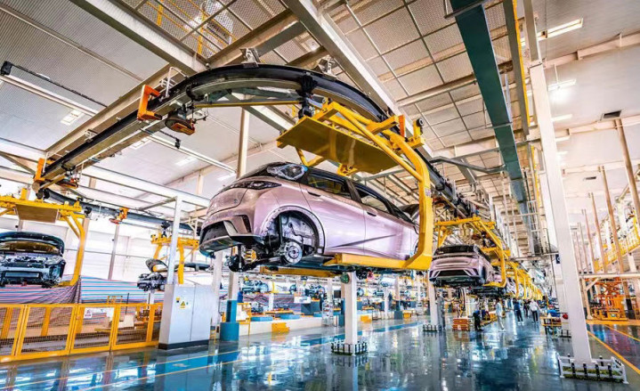 图为比亚迪集团民众总部总装车间。新华社记者周科 摄